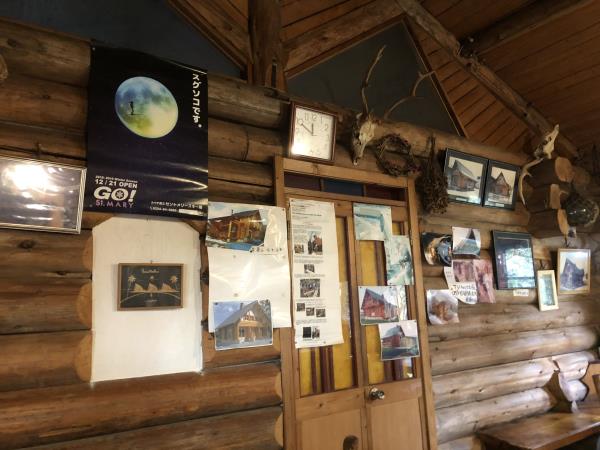 ログハウスの製作販売もしているので、壁にはログハウスの写真が多く貼られていました