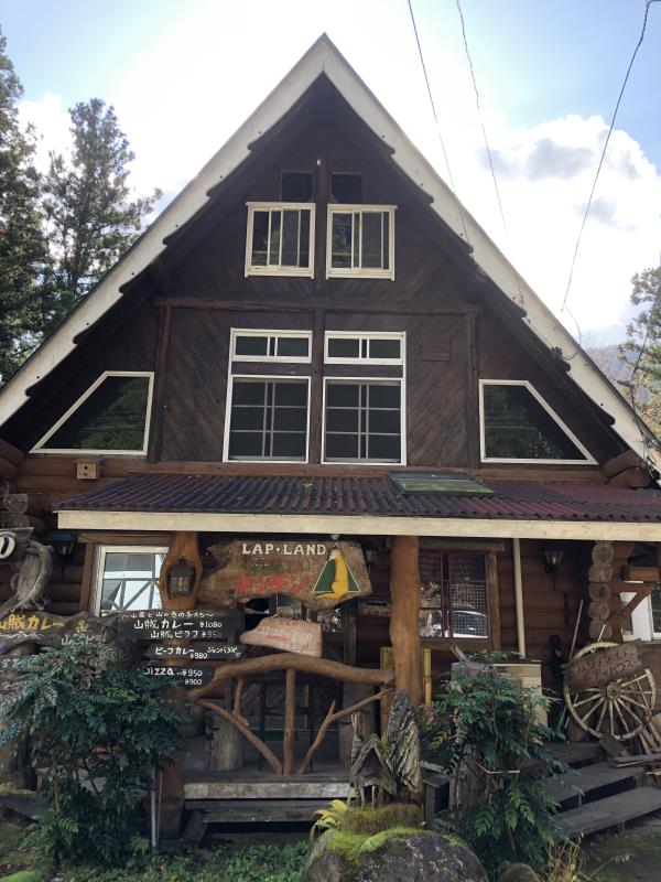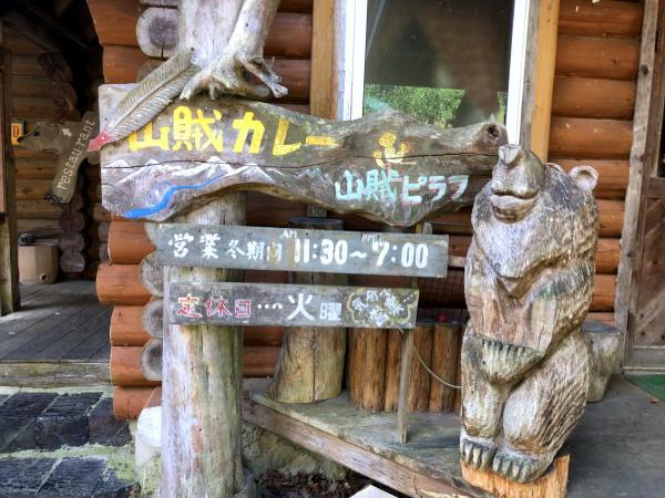 ログハウスの三角屋根が特徴で、この建物から「山賊カレー」はイメージできなかった