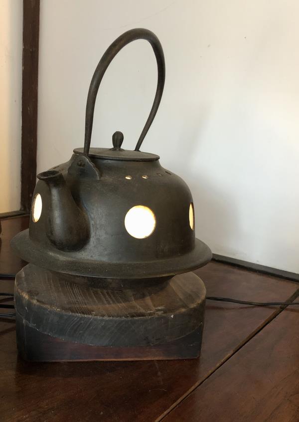 床の間に飾ってある「鉄やかん」のランプが珍しくて撮影。。。