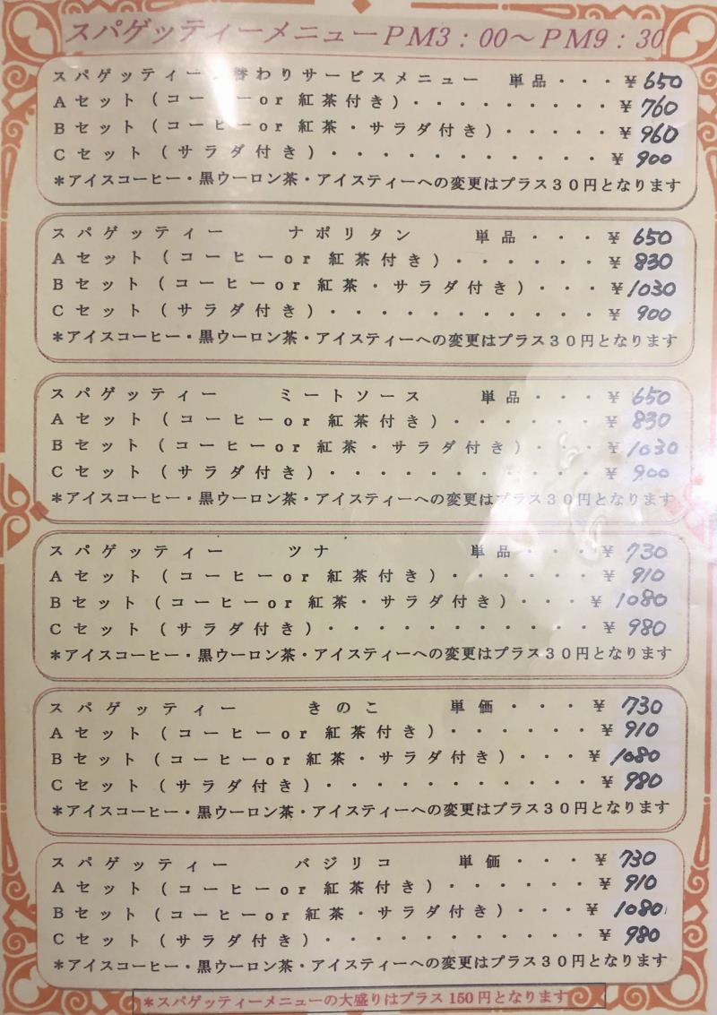 ランチタイムメニューの日替わりスパゲティは、先ほど入口で確認したものです
